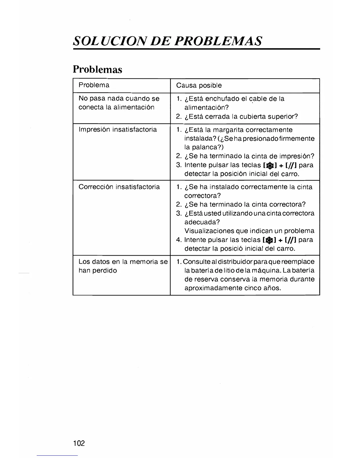 Brother GX-9750 - Problemas comunes; CUIDADO DE LA MAQUINA Y ESPECIFICACIONES