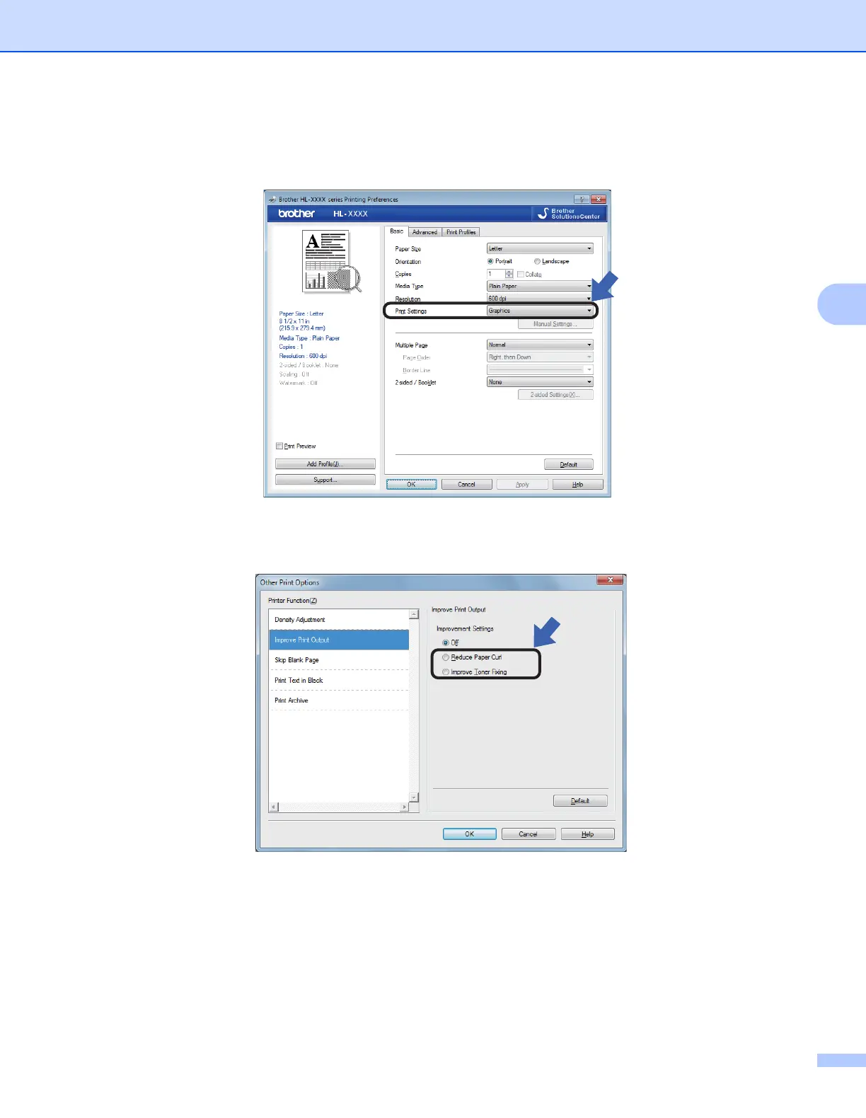 If the paper is curled or the toner is not fixed well on the paper, you can adjust these settings in