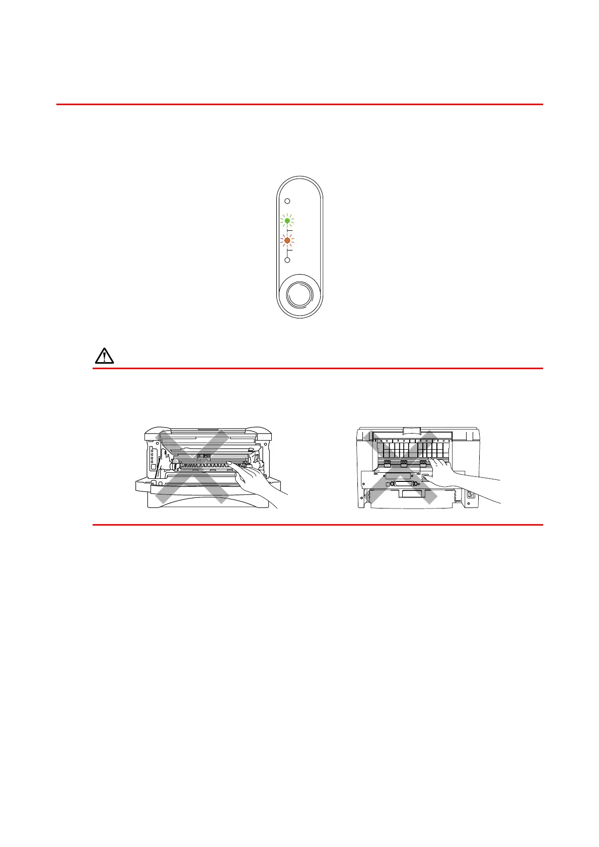 HOT! When you open the front or rear cover of the printer, never touch the shaded