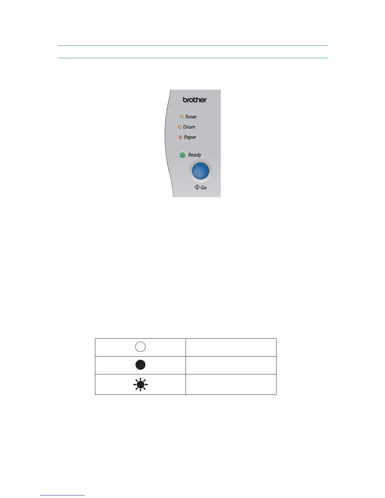 There are four Light Emitting Diodes (LEDs) (Toner, Drum, Paper, Ready) and a control