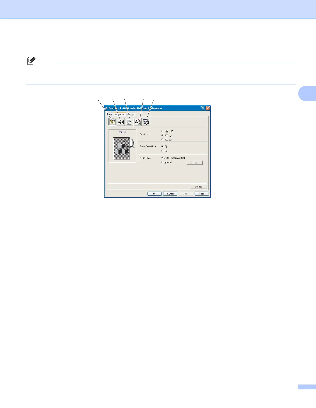Select the resolution, toner save mode and print settings or gray printing setting.