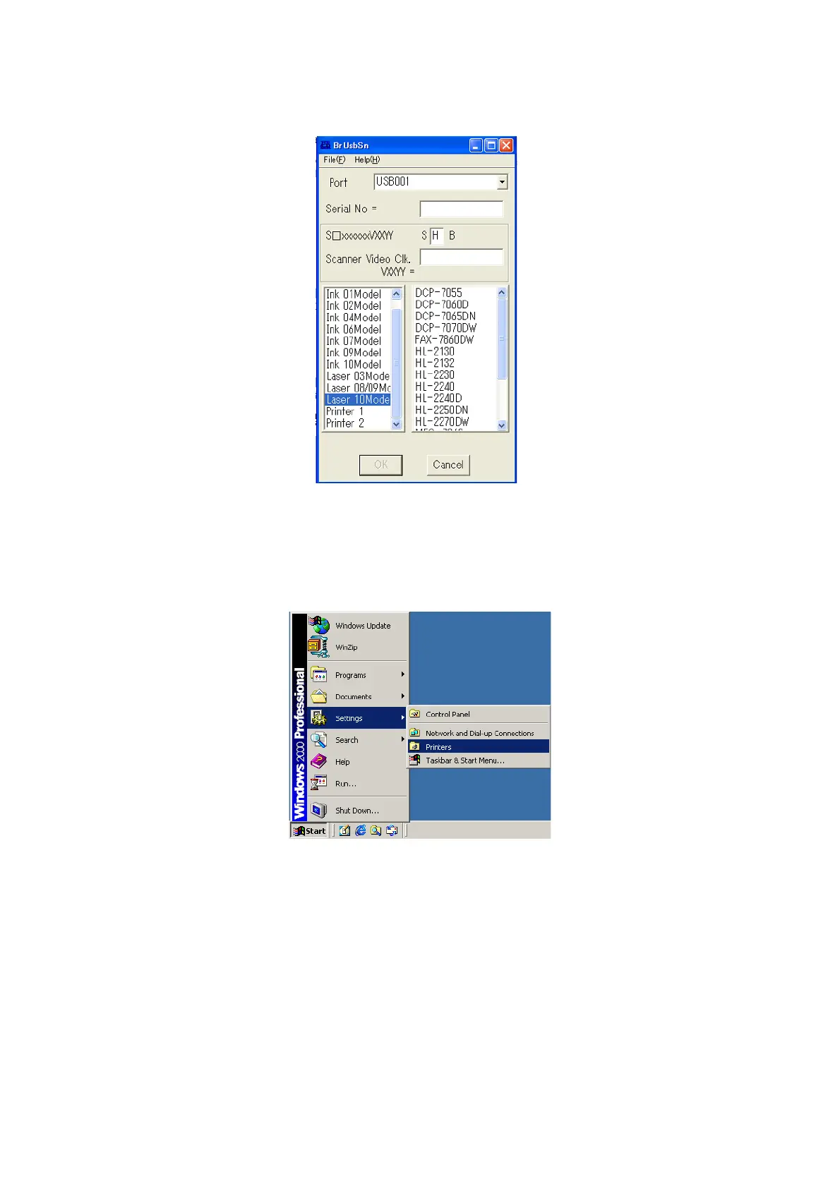 (3) In Port on the brusbsn screen, select the port number assigned to the Brother
