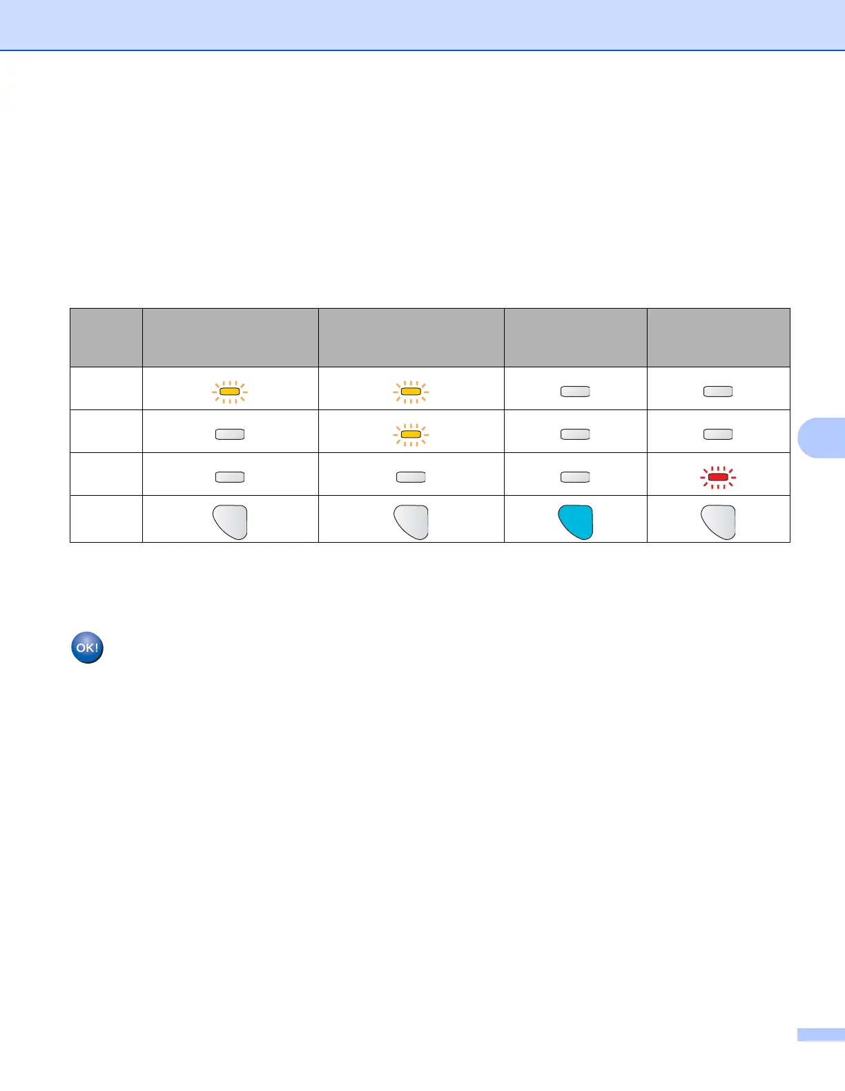 d Wait for the Ready LED (Go button) of your printer to indicate connection succeeded. (See the table