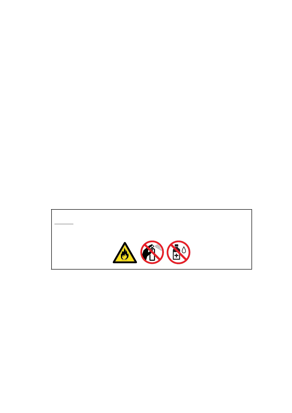 DO NOT use flammable substances, any type of spray or any organic solvent/liquids
