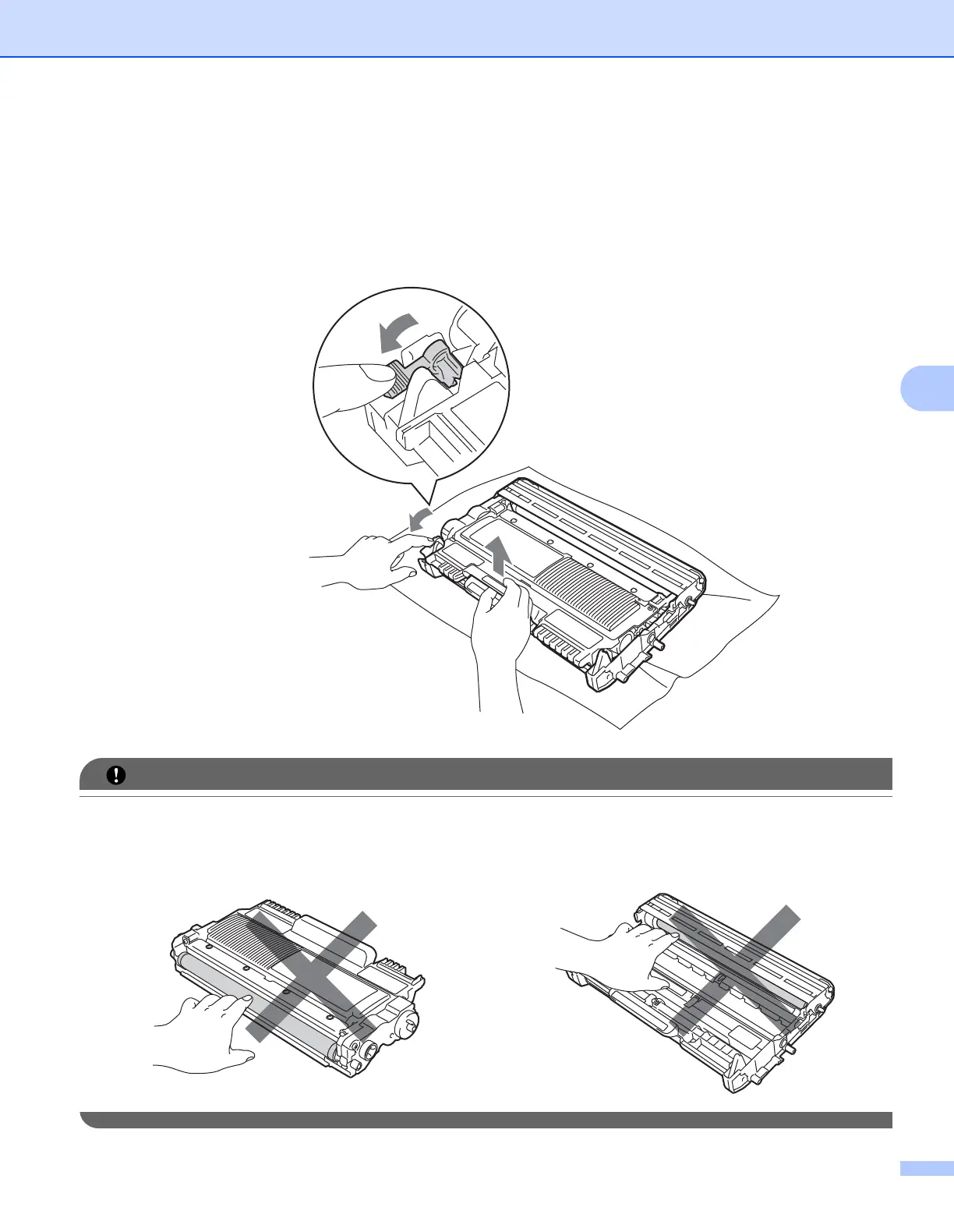 • Handle the toner cartridge carefully. If toner scatters on your hands or clothes, immediately wipe or wash