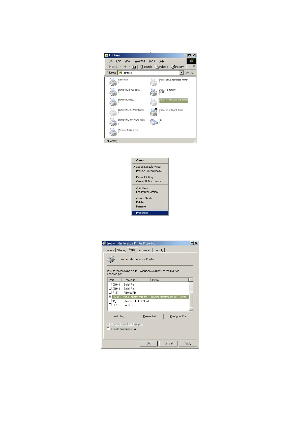 In this example, the port number assigned to the Brother Maintenance USB Printer is