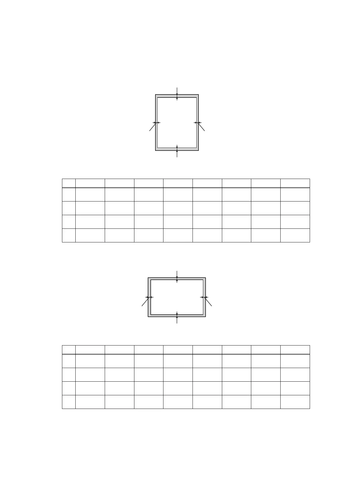 The area of the paper that cannot be printed on is shown in the table below: