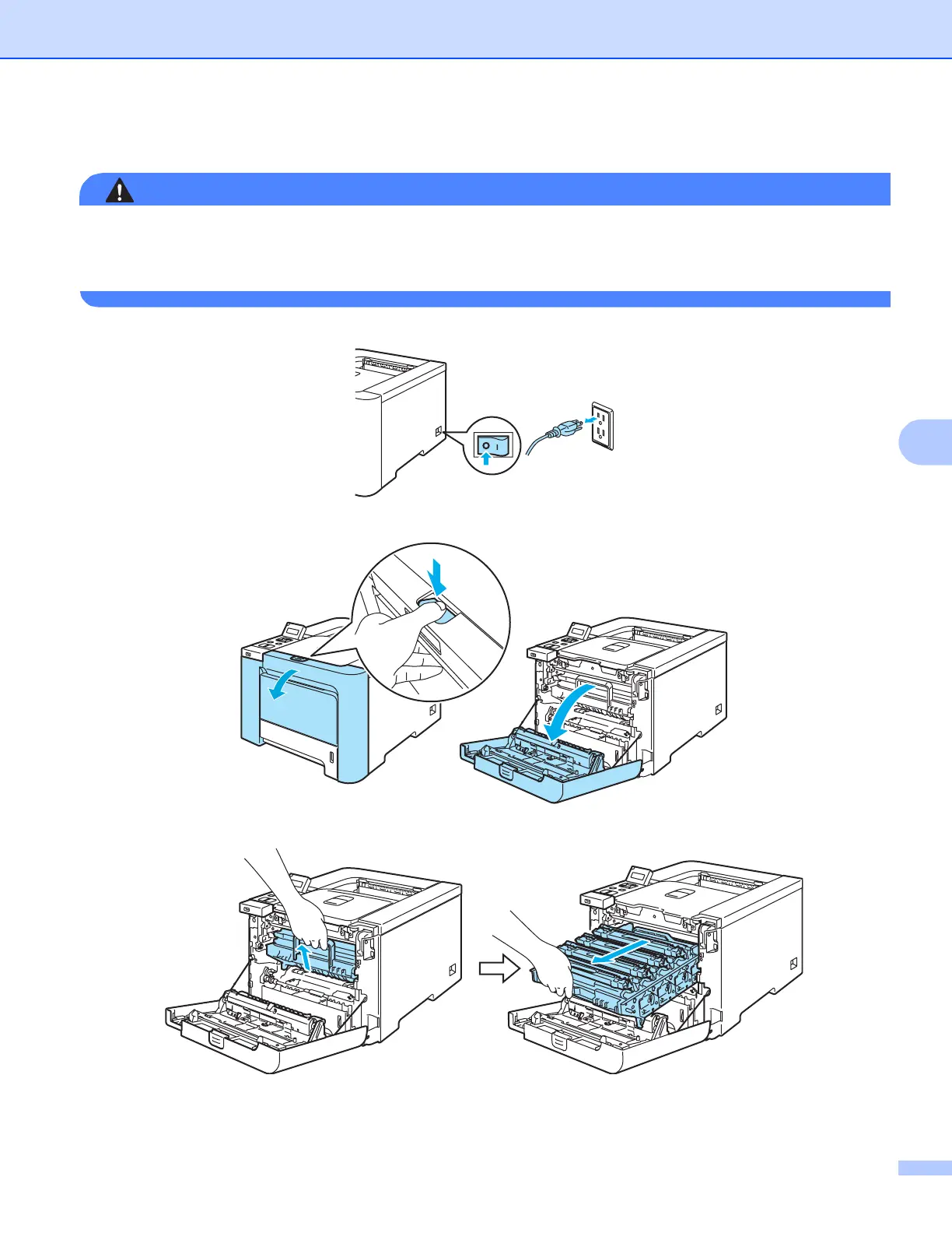 c Hold the green handle of the drum unit. Lift the drum unit up and then pull it out until it stops.