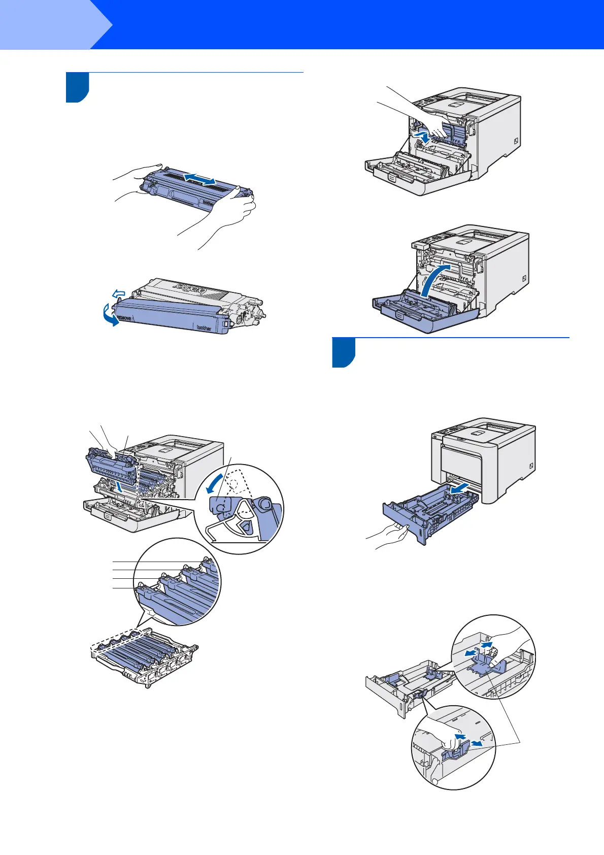 Brother HL-4070CDW - Installing the Toner Cartridges; Loading Paper in the Paper Tray