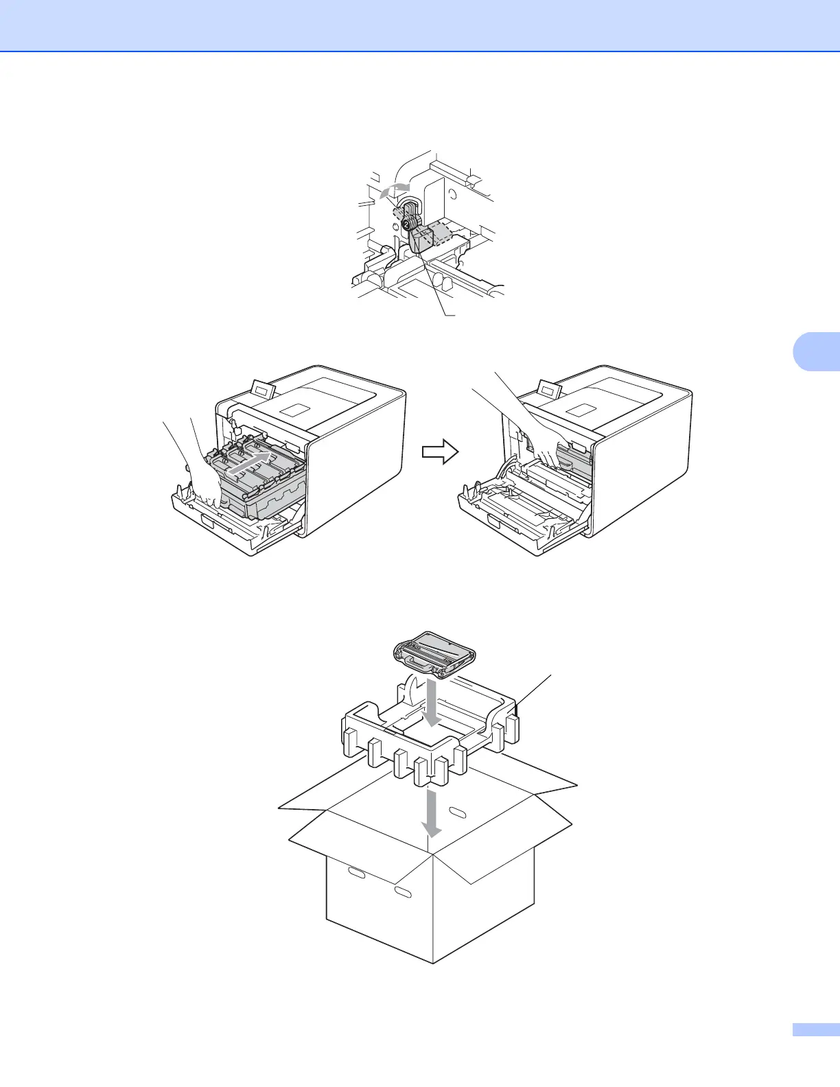 p Put the Styrofoam piece (1) into the carton. Then put the waste toner box in the Styrofoam piece.