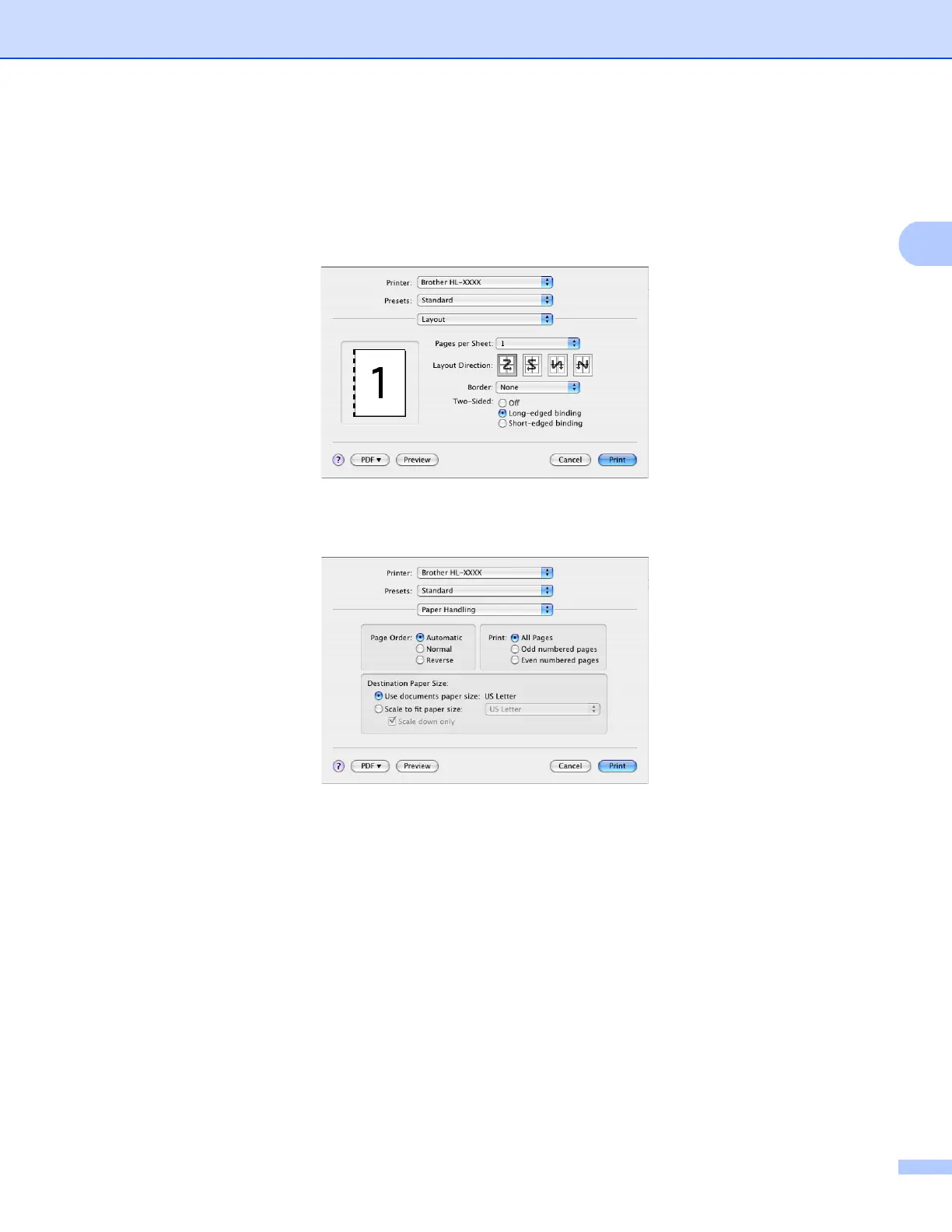b Choose Long-edged binding or Short-edged binding in Two-Sided.