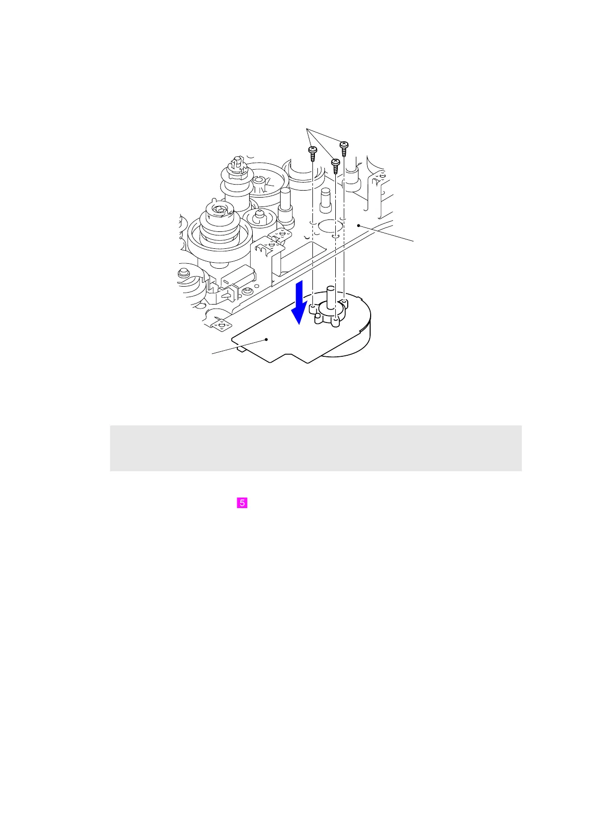(5) Remove the three Screw bind M3x4 screws to remove the Drum drive motor from the Top