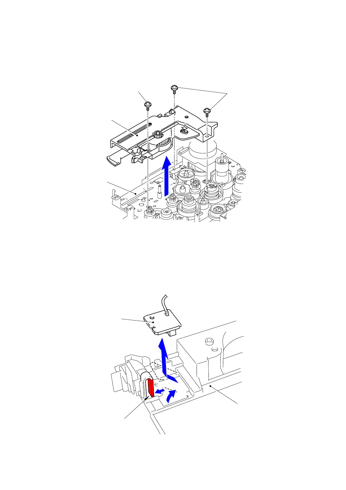 (3) Release the Hook to remove the Develop release sensor PCB ASSY from the Top drive