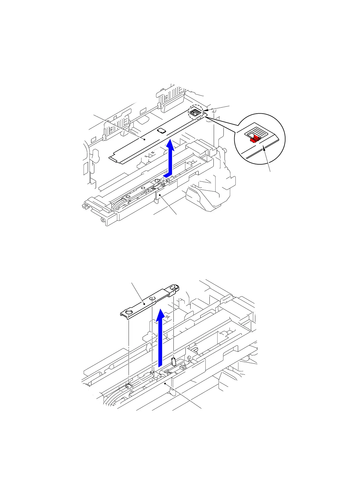 (1) Press “A” to release the Hook and then remove the MP upper frame cover from the MP