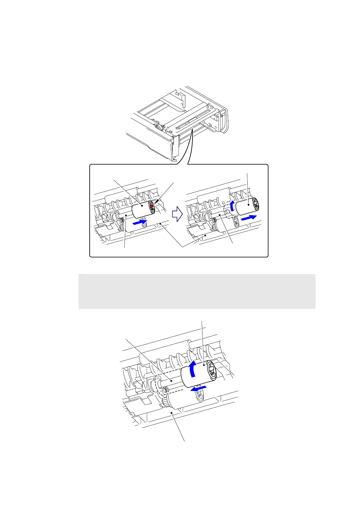 When assembling the T2 separation roller ASSY, be sure to assemble it by sliding it in