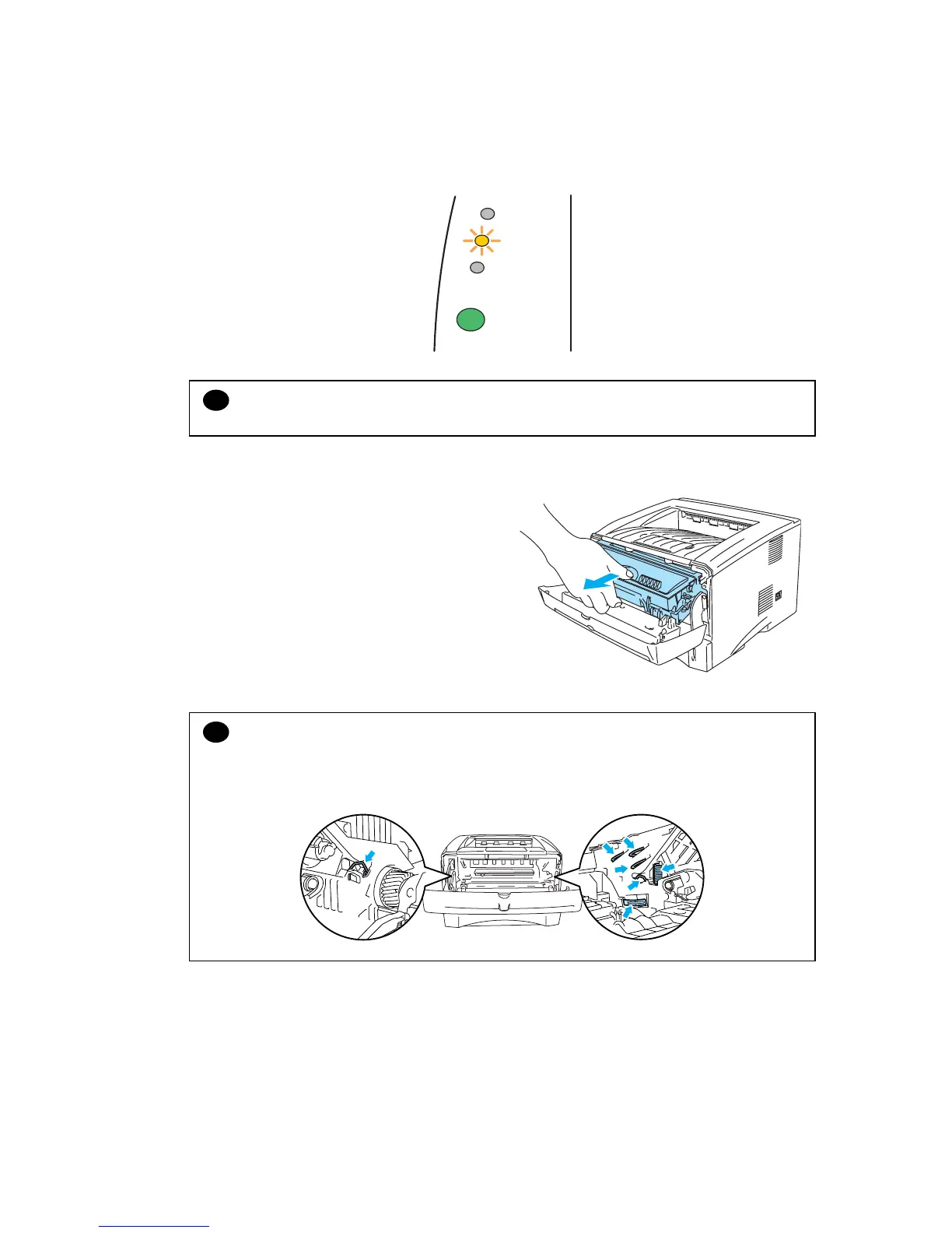 If the LED shows the message below, it means the drum unit is near the end of its life. We