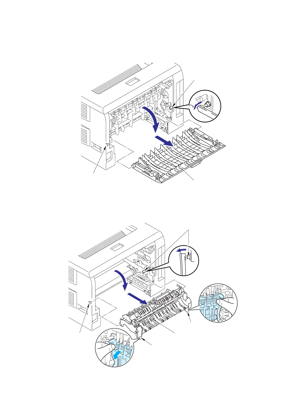 (13)  Remove the Arms of the Outer chute ASSY from the Pins.