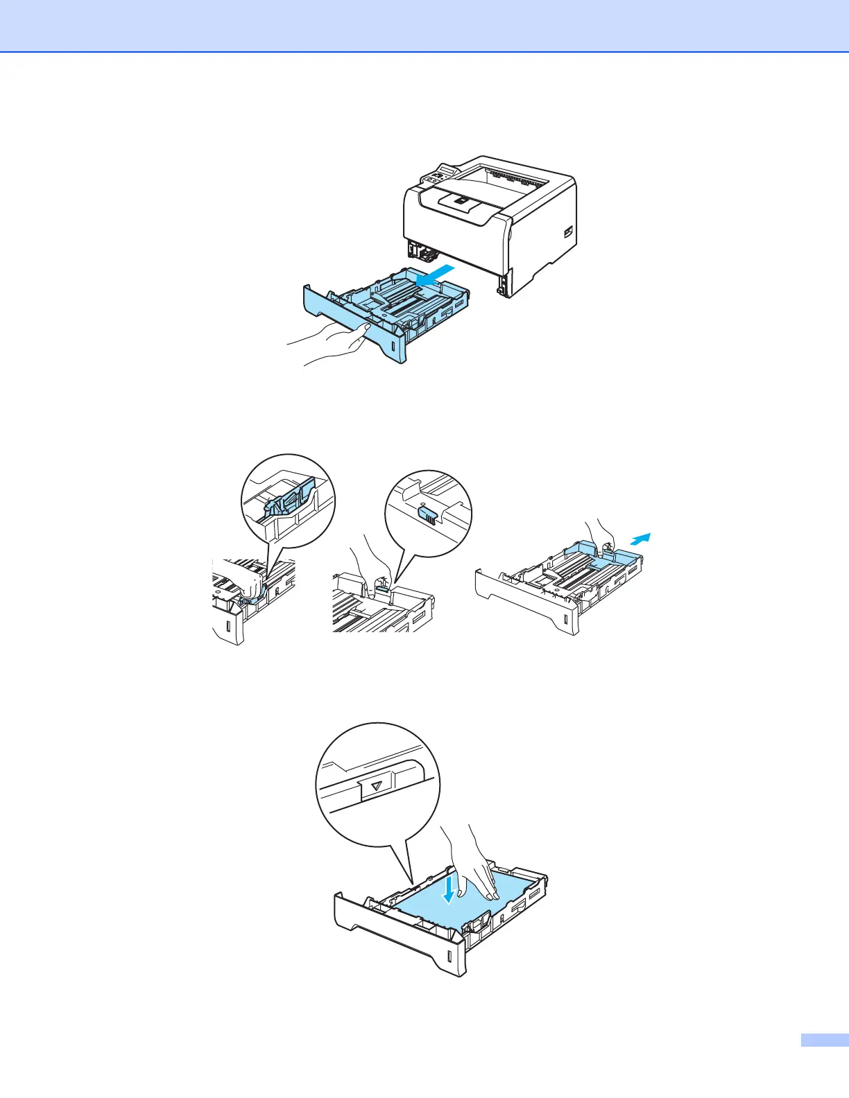 c While pressing the blue paper-guide release lever, slide the paper guides to fit the paper size. Make sure