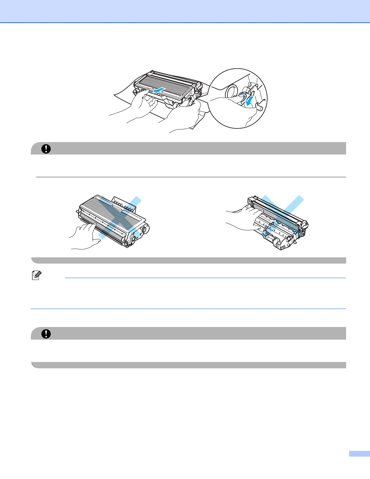 To avoid print quality problems, DO NOT touch the shaded parts shown in the illustrations.