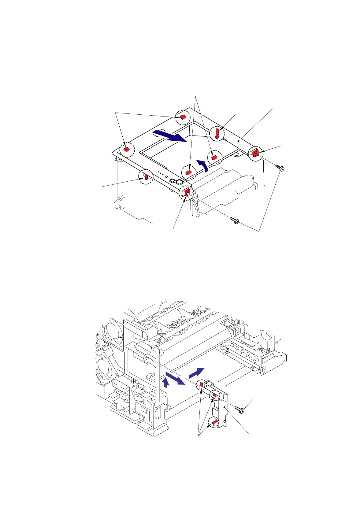 (20) Release all Hooks of the Top cover printed ASSY and lift up the front side of the Top