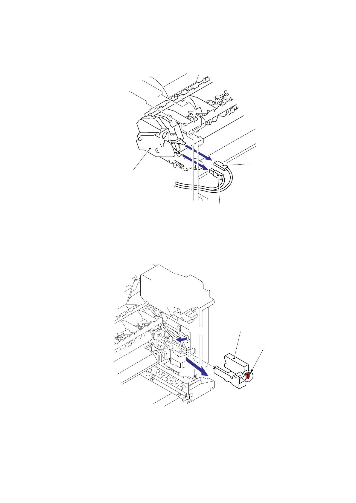 (23) Remove the Heater terminal L and Heater terminal S from the Fuser unit while holding the