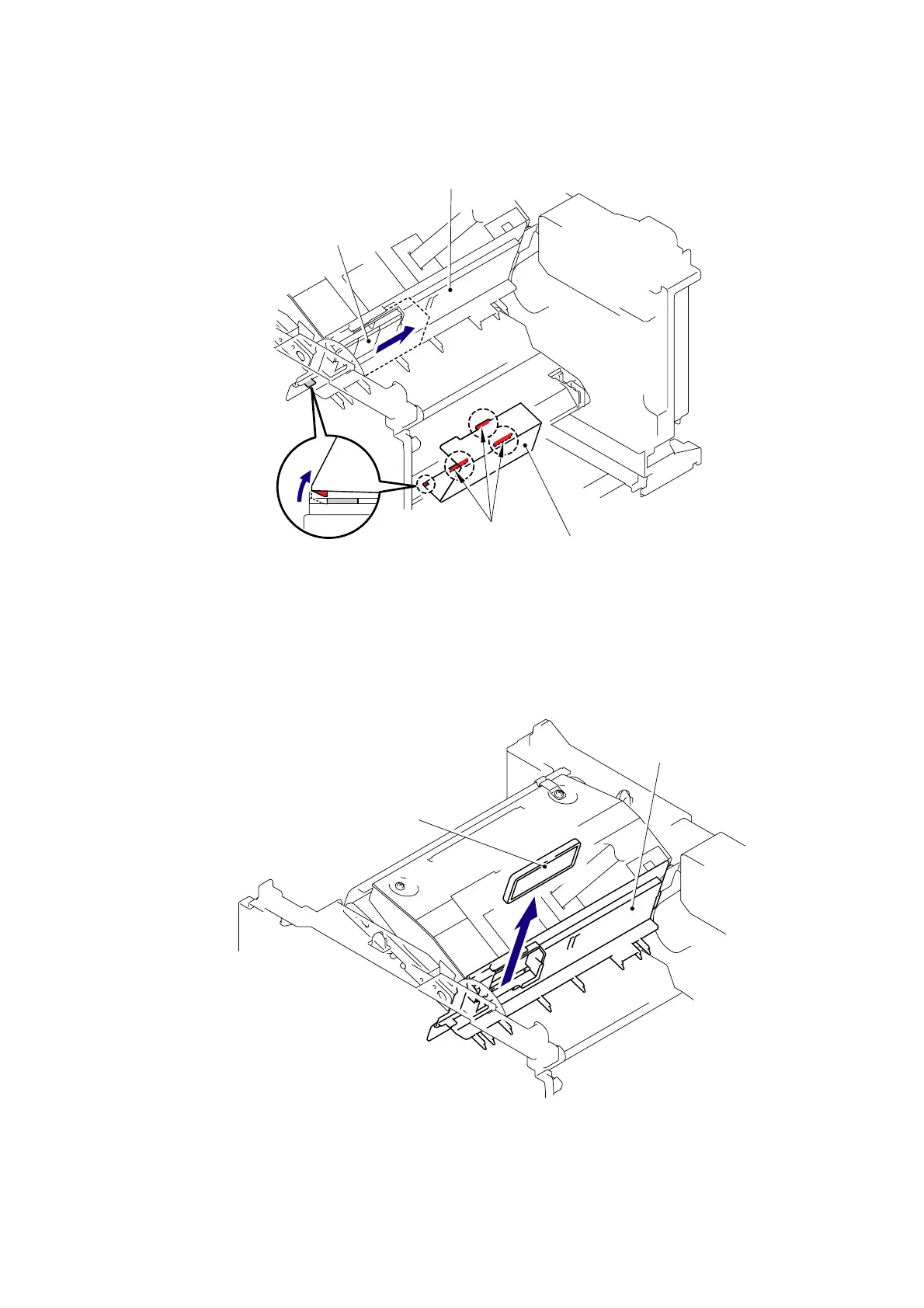 (27) Slide the Sub duct to the direction of 27b while pressing the three Hooks and remove the