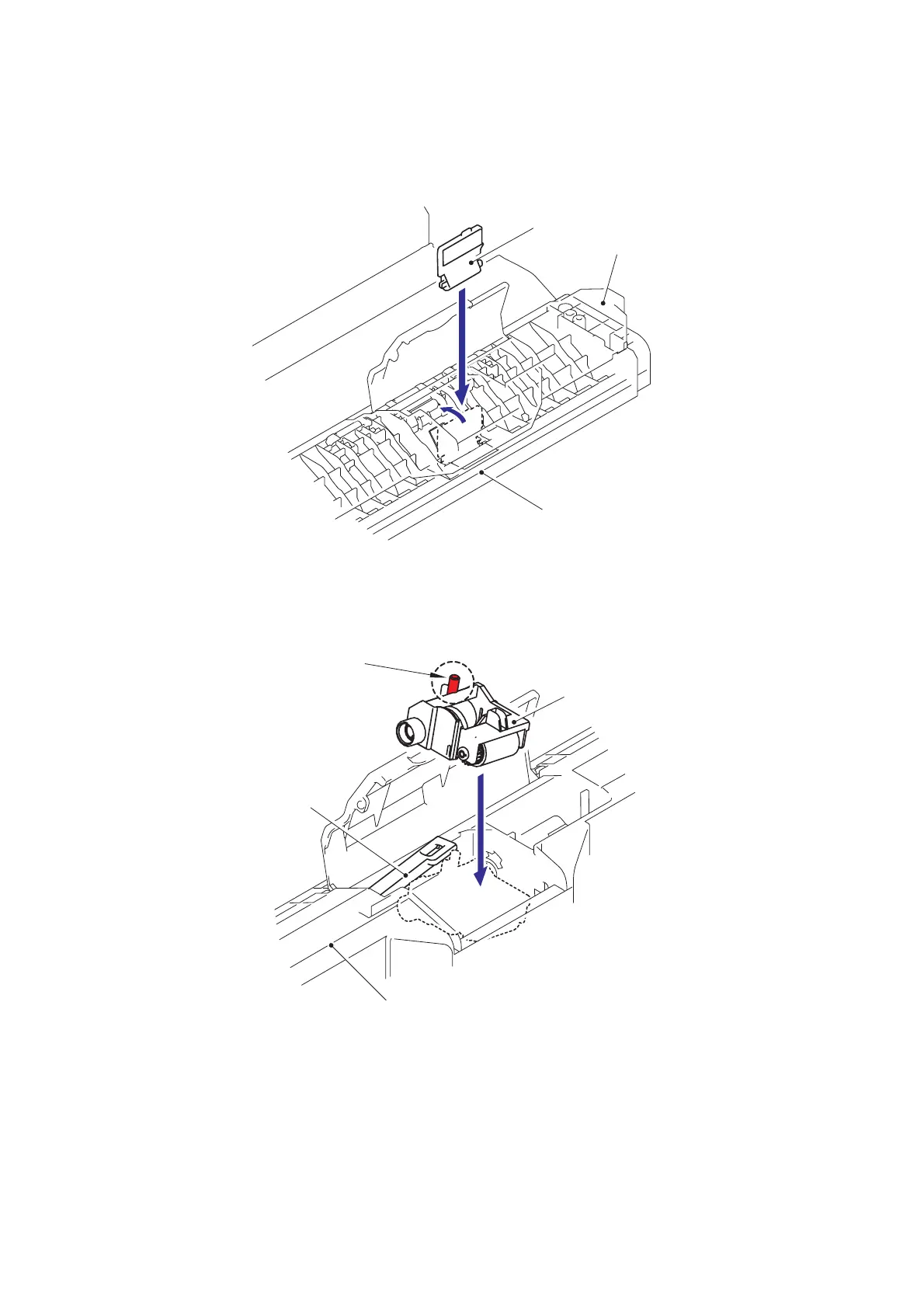 (1) Put the Hook of the Separation pad ASSY MP into the MP feed frame and pull down the