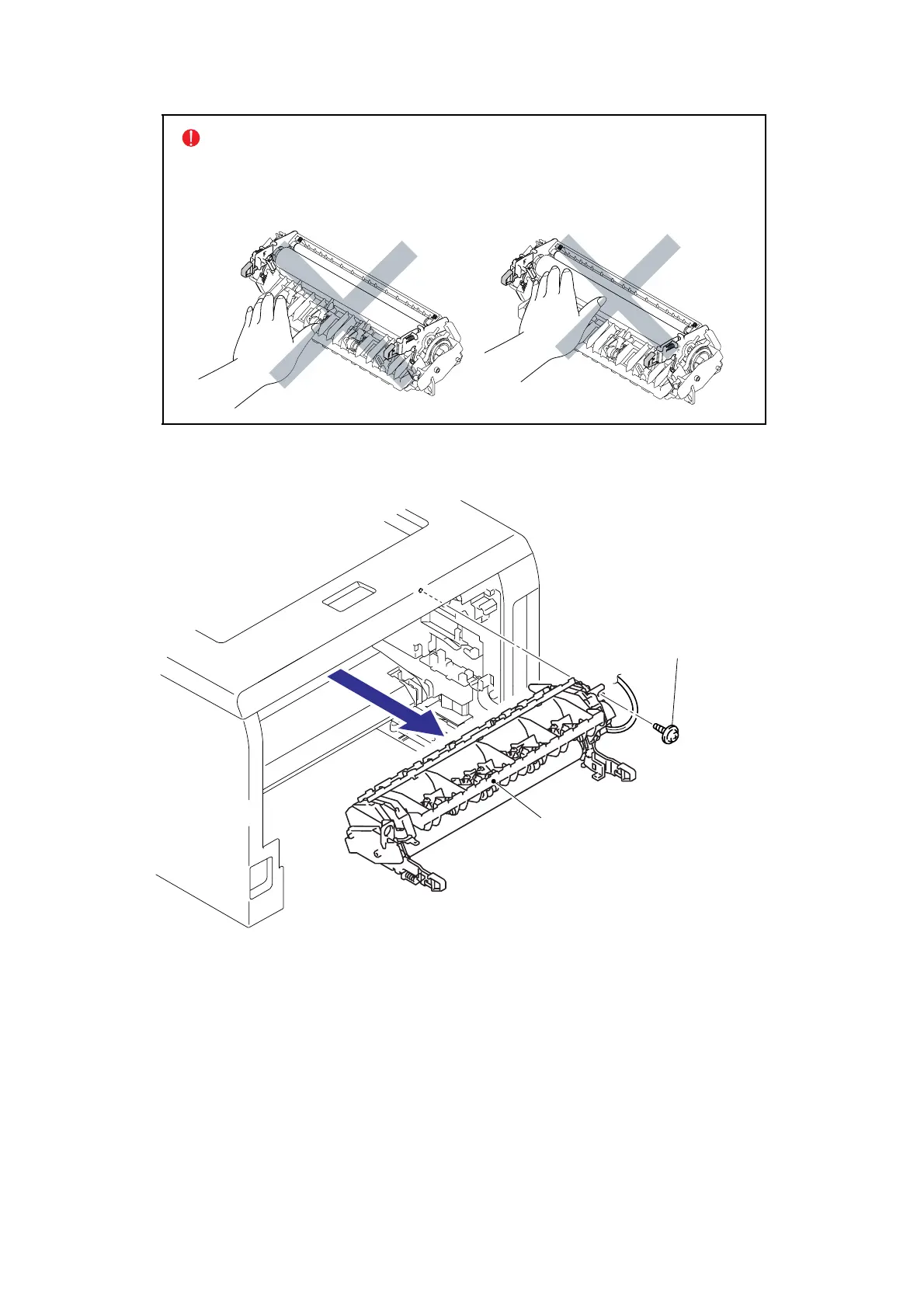 DO NOT touch the rollers and the electrodes to prevent damage to the fuser unit In