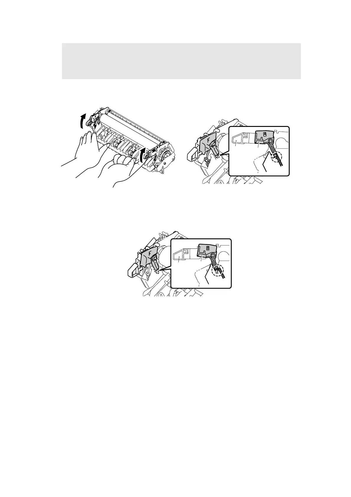 (1) Put the fuser unit on a flat, horizontal surface. Pull up each of the black tab (a) on the