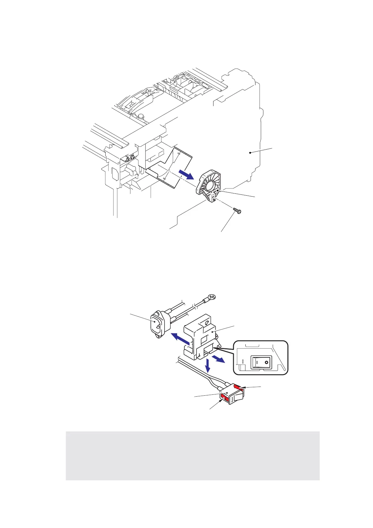• When assembling the power supply switch onto the SW holder, give attention to the