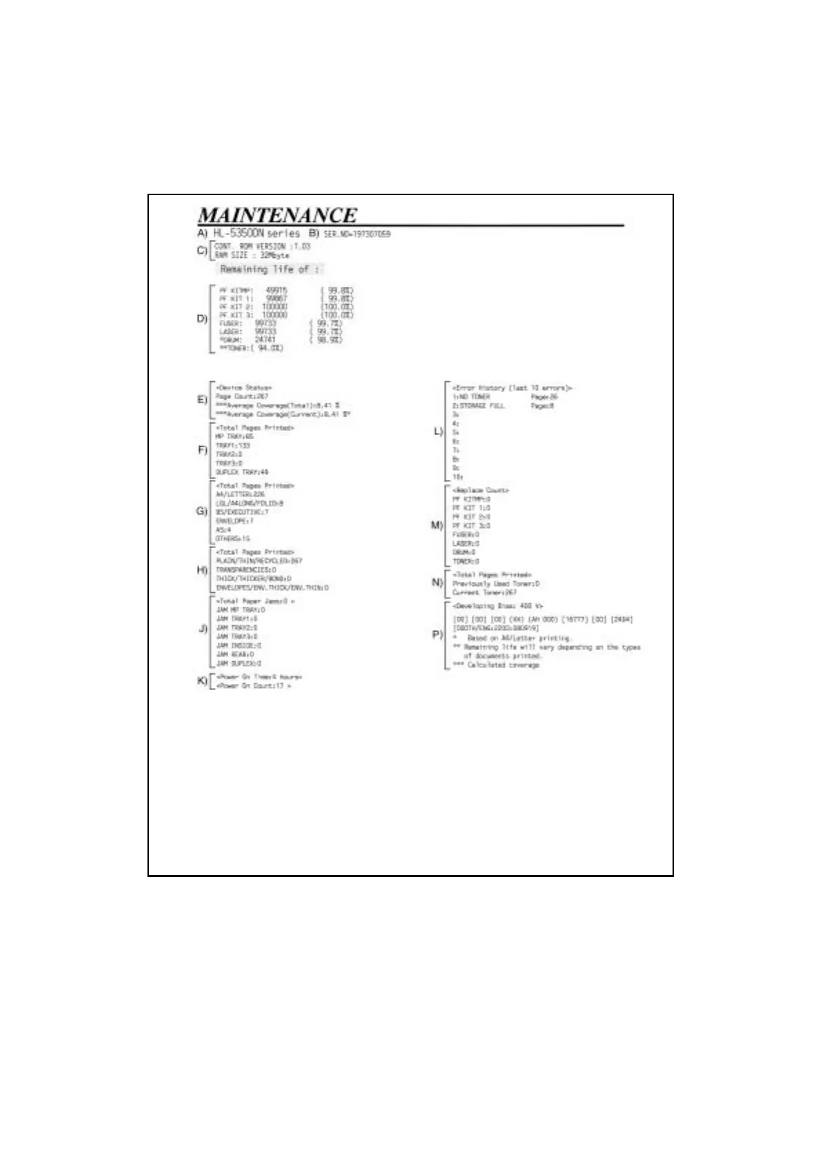 This is to print a list of all maintenance information including printer coverage