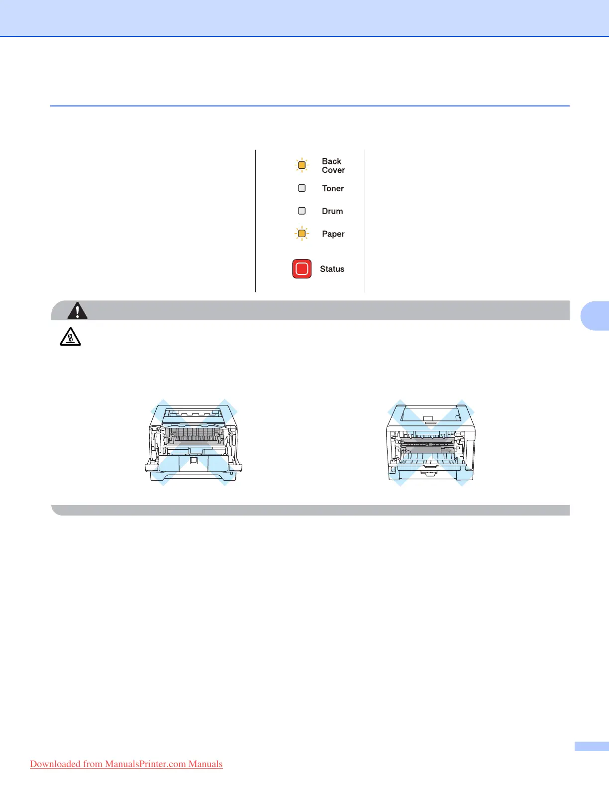 After you have just used the printer, some internal parts of the printer will be extremely hot. To prevent