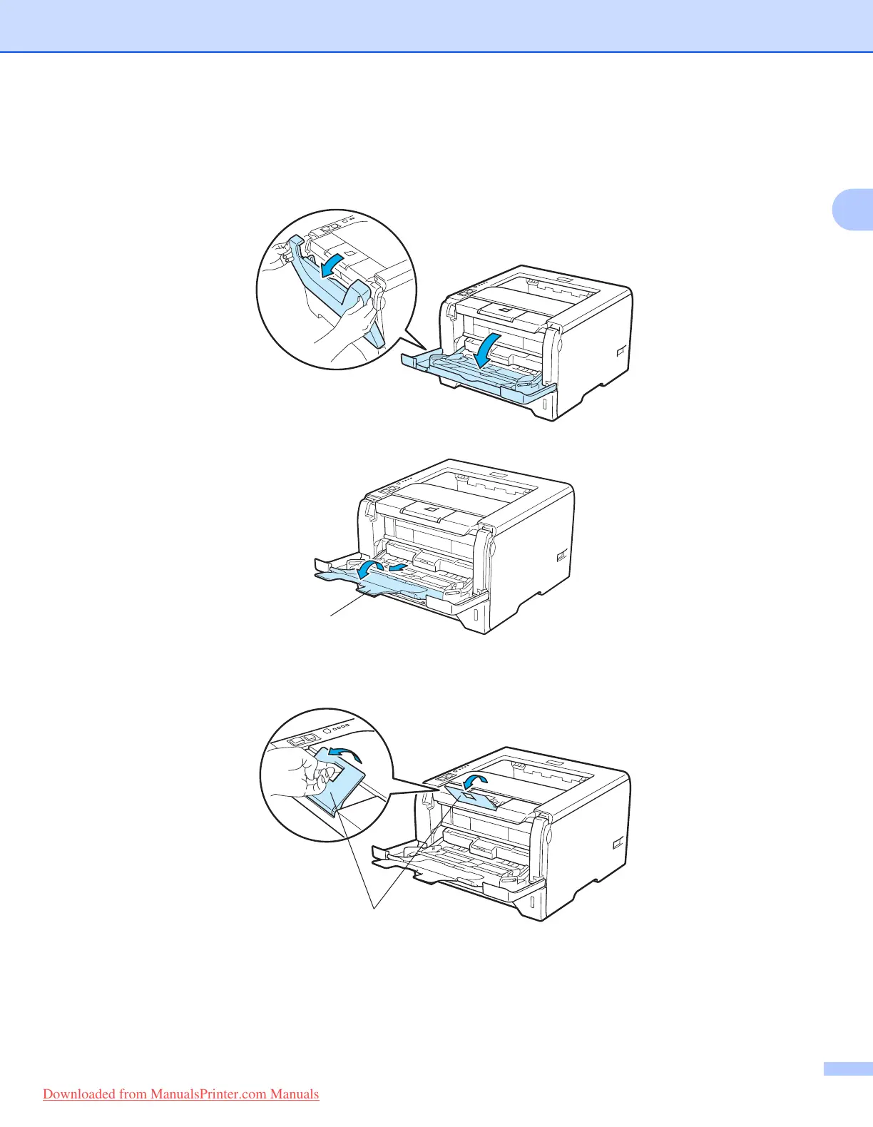 b Pull out the MP tray support flap (1).