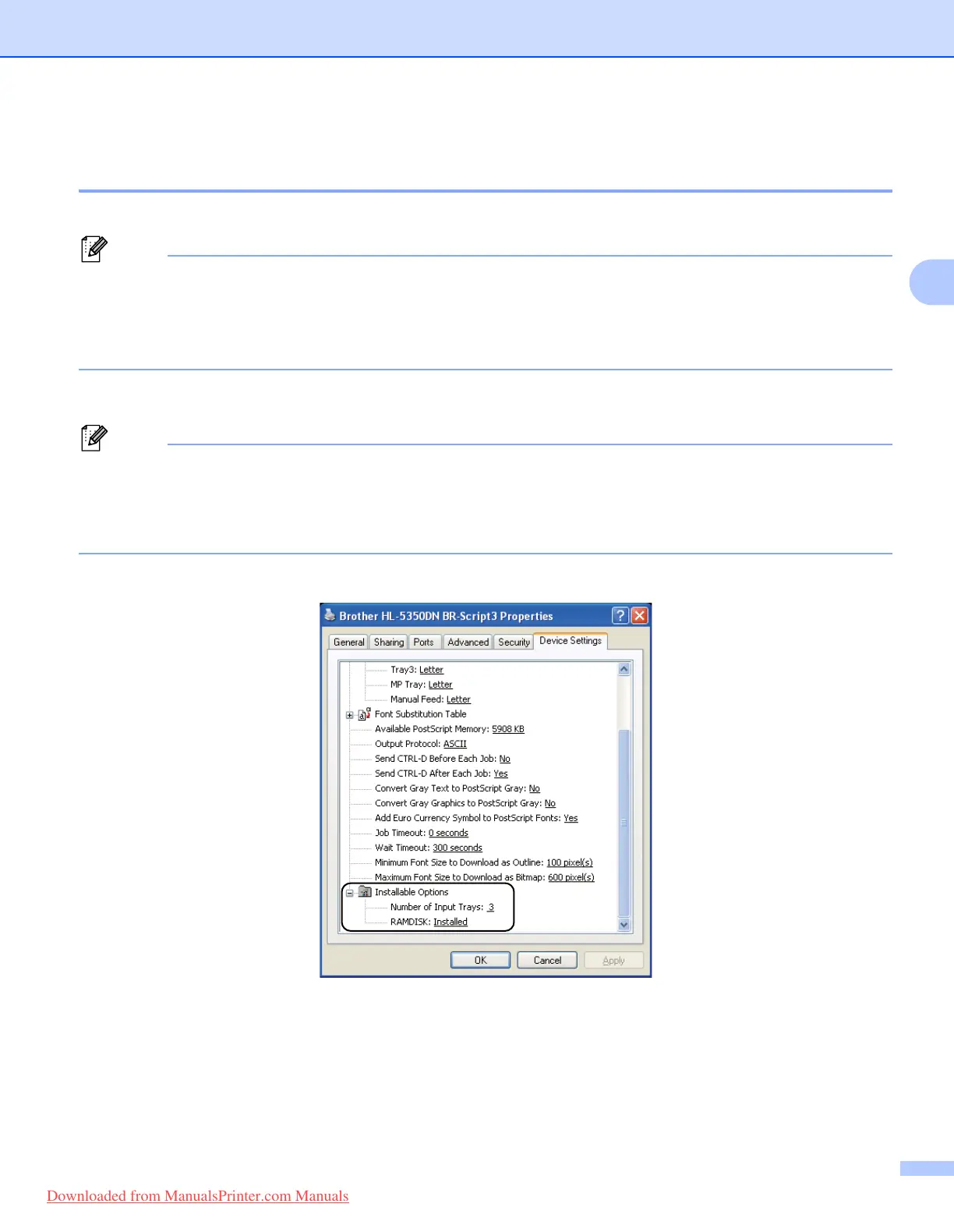 5340D/HL-5350DN/HL-5370DW BR-Script3 icon and select Properties to access the Device Settings