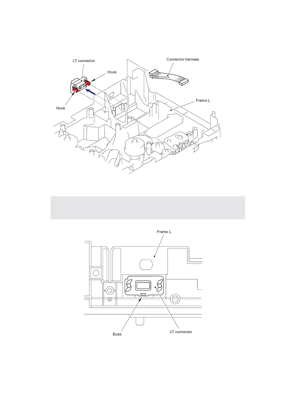 When assembling the LT connector, ensure that its direction is correct referring to the