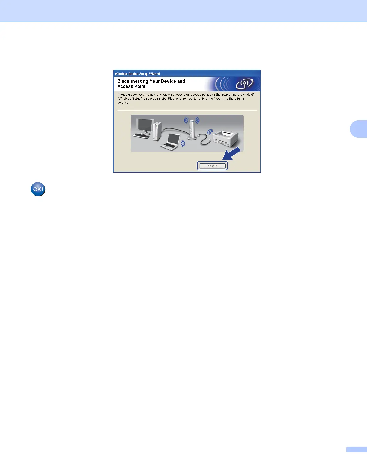 r Disconnect the network cable between your access point (hub or router) and the machine, and click Next