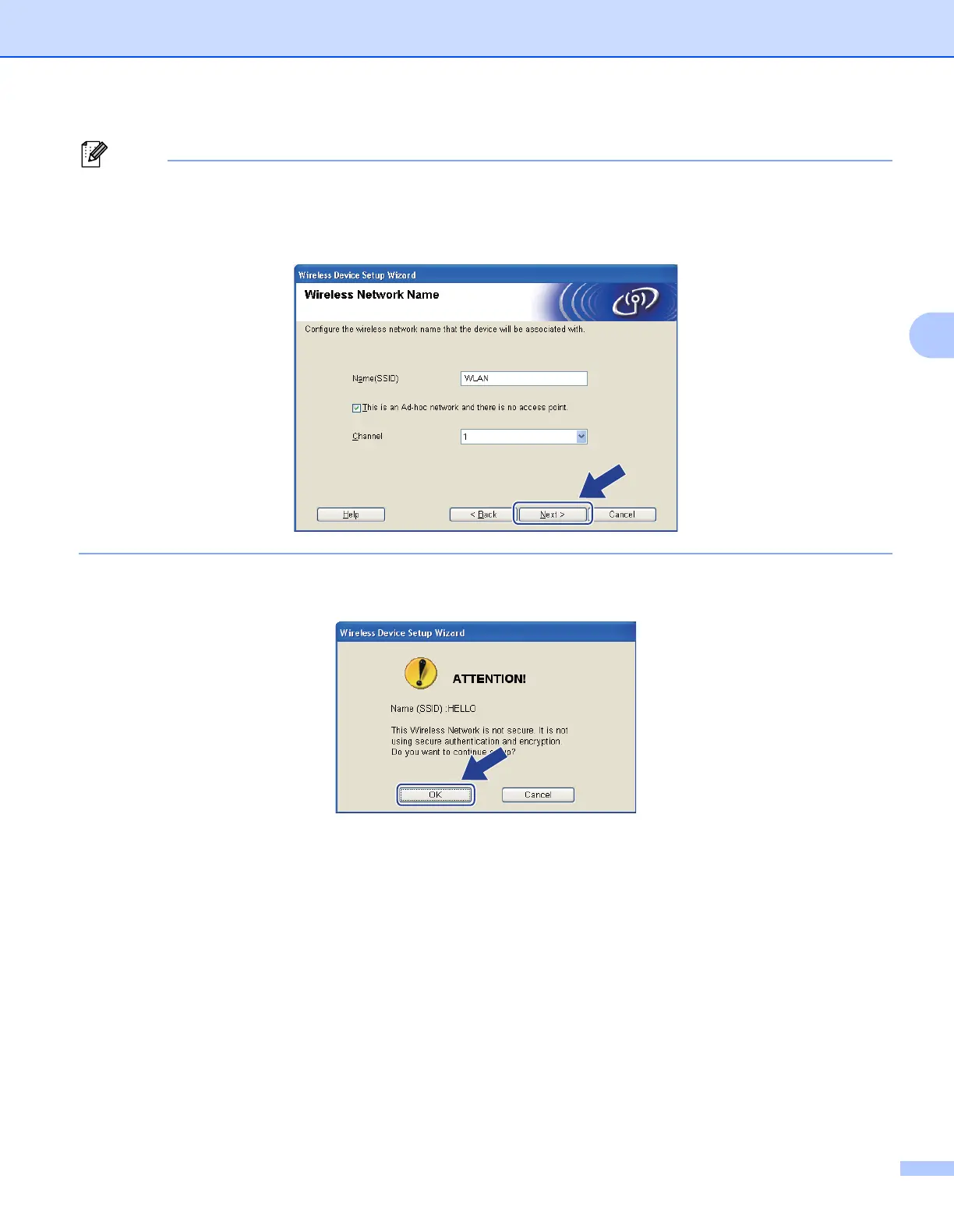 button. Check This is an Ad-hoc network and there is no access point., and then enter the Name