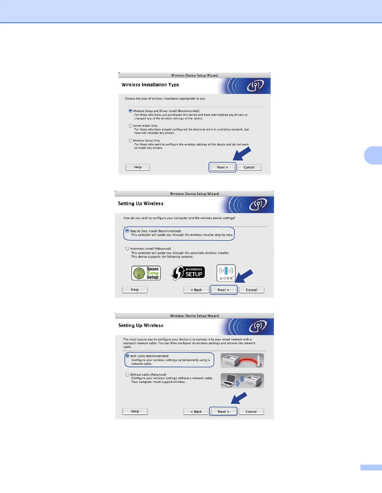 g Choose Wireless Setup and Driver Install (Recommended) or Wireless Setup Only, and then click