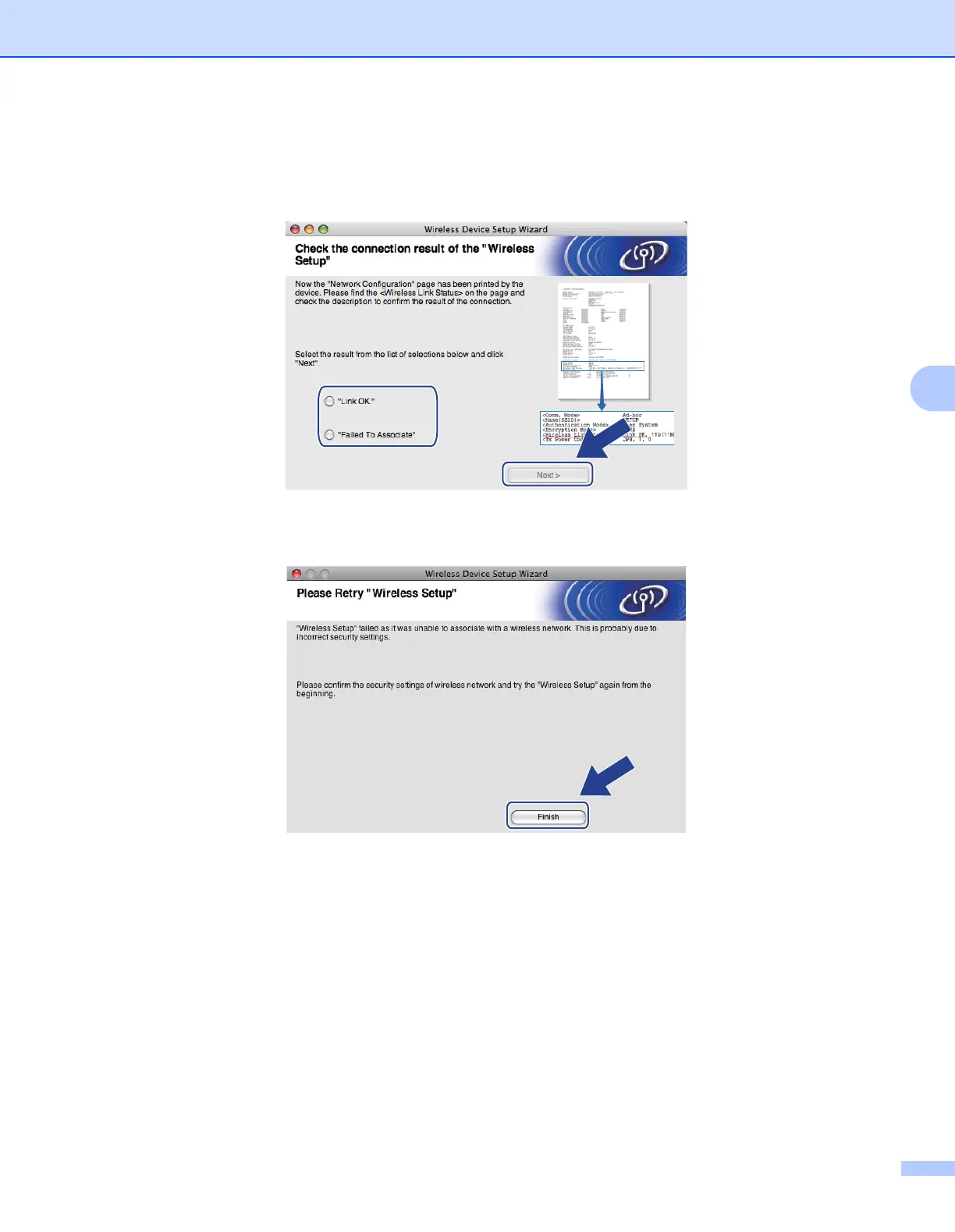 s Click Finish. Wireless setup was unable to associate with a wireless network. This is probably due to