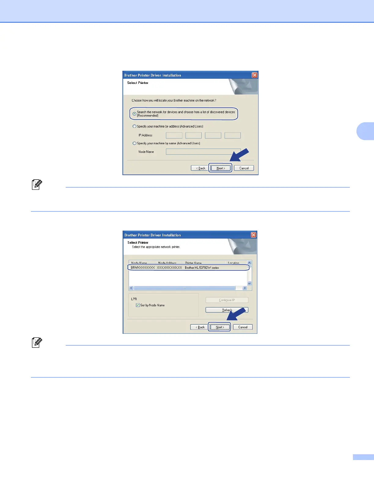 (Recommended). Or enter your printer's IP address or its node name. Click Next.
