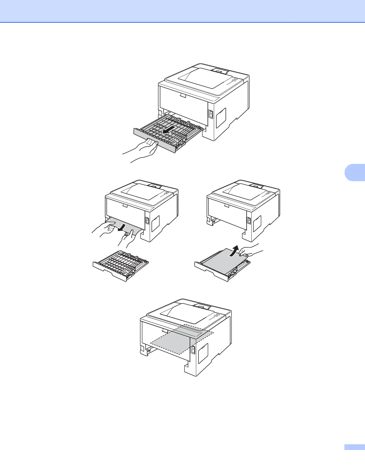 l Pull the jammed paper out of the machine or out of the duplex tray.
