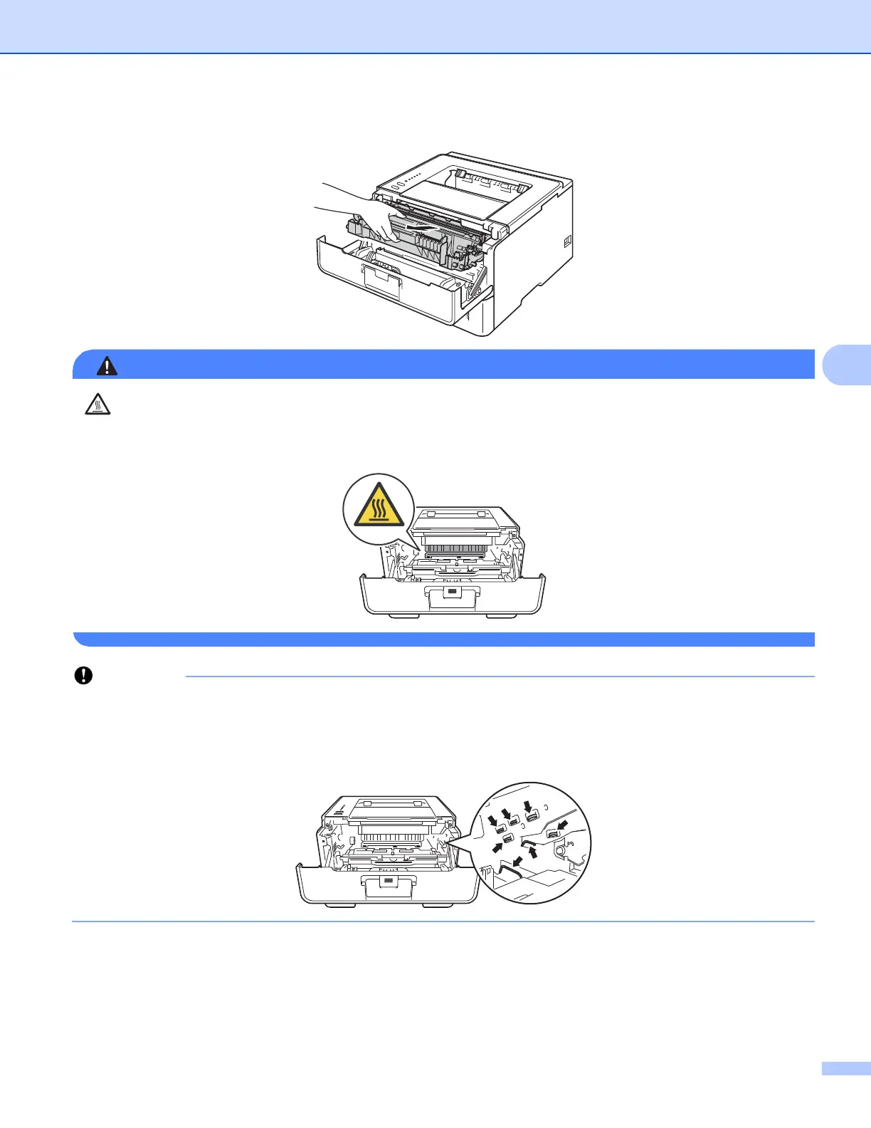 c Take out the drum unit and toner cartridge assembly.
