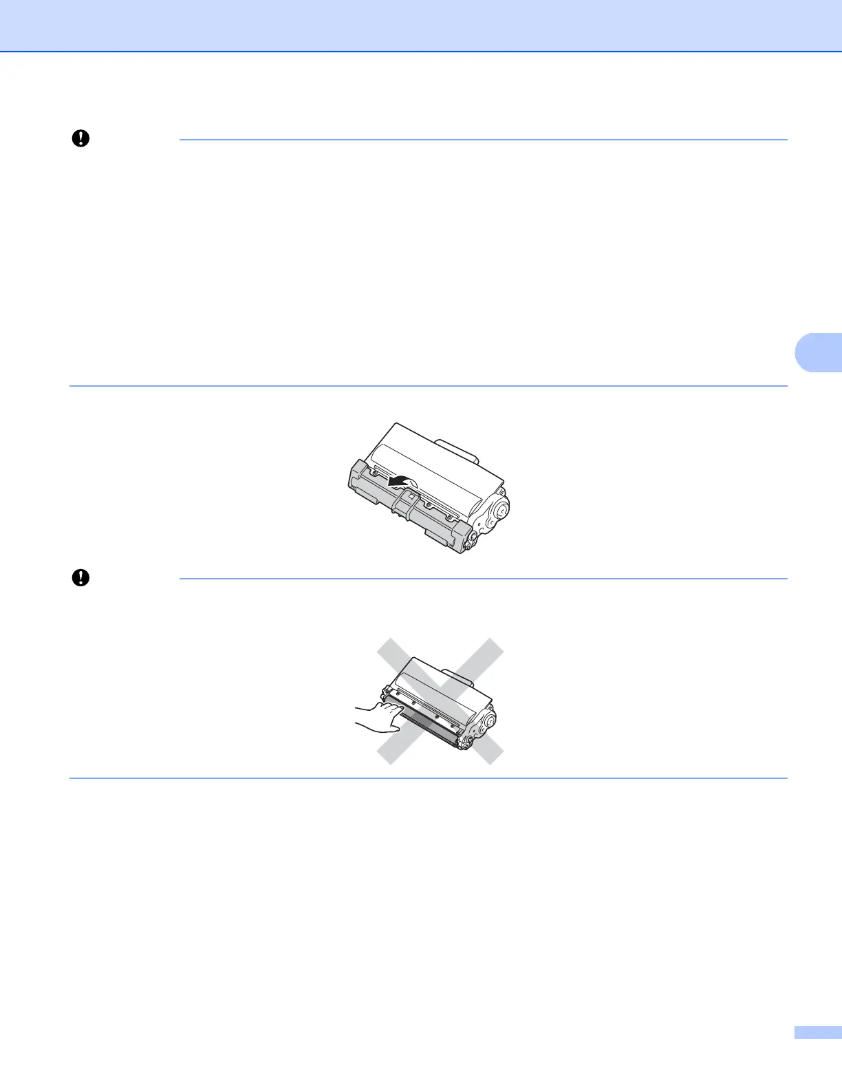 • If an unpacked drum unit is put in direct sunlight or room light, the unit may be damaged.