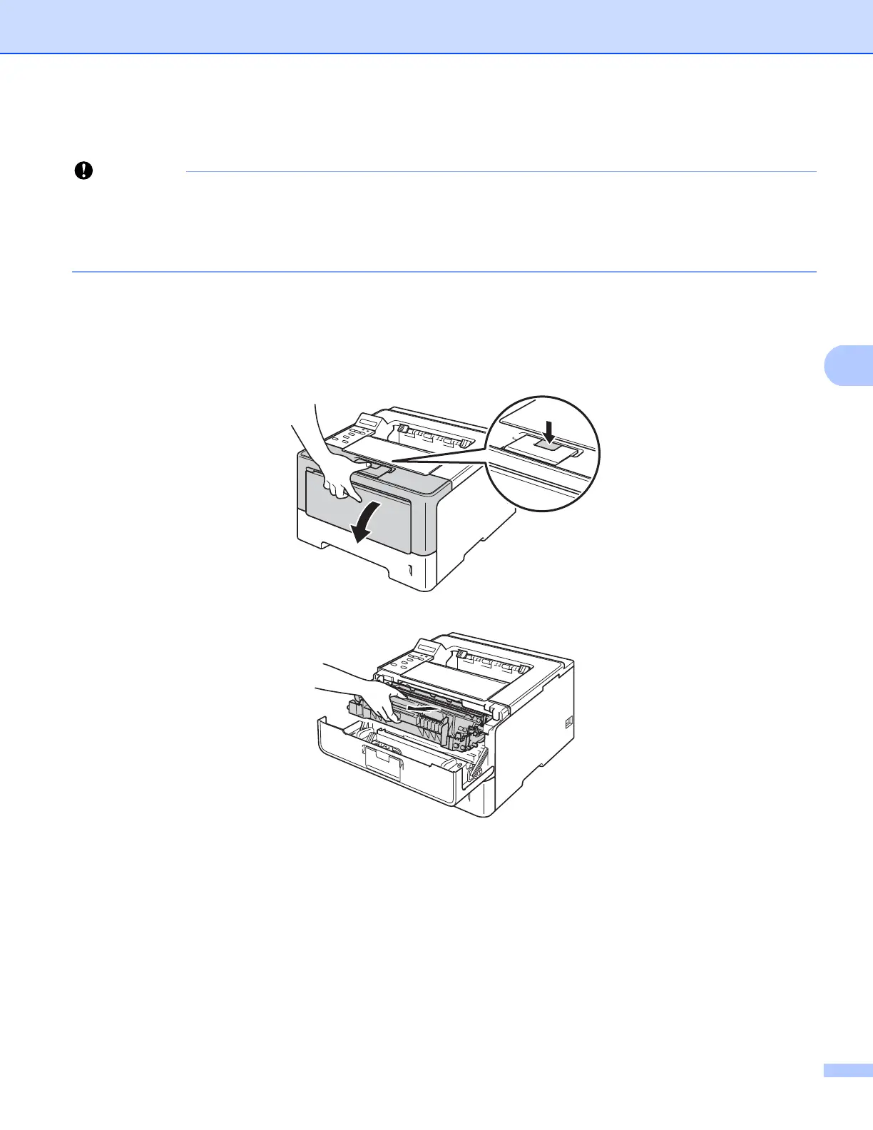 c Take out the drum unit and toner cartridge assembly.