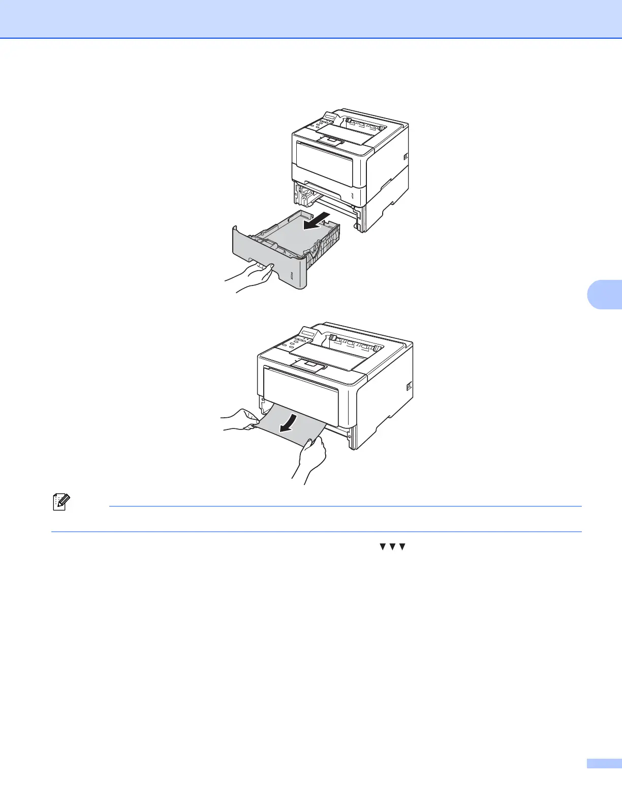 Pulling the jammed paper downward allows you to remove the paper more easily.