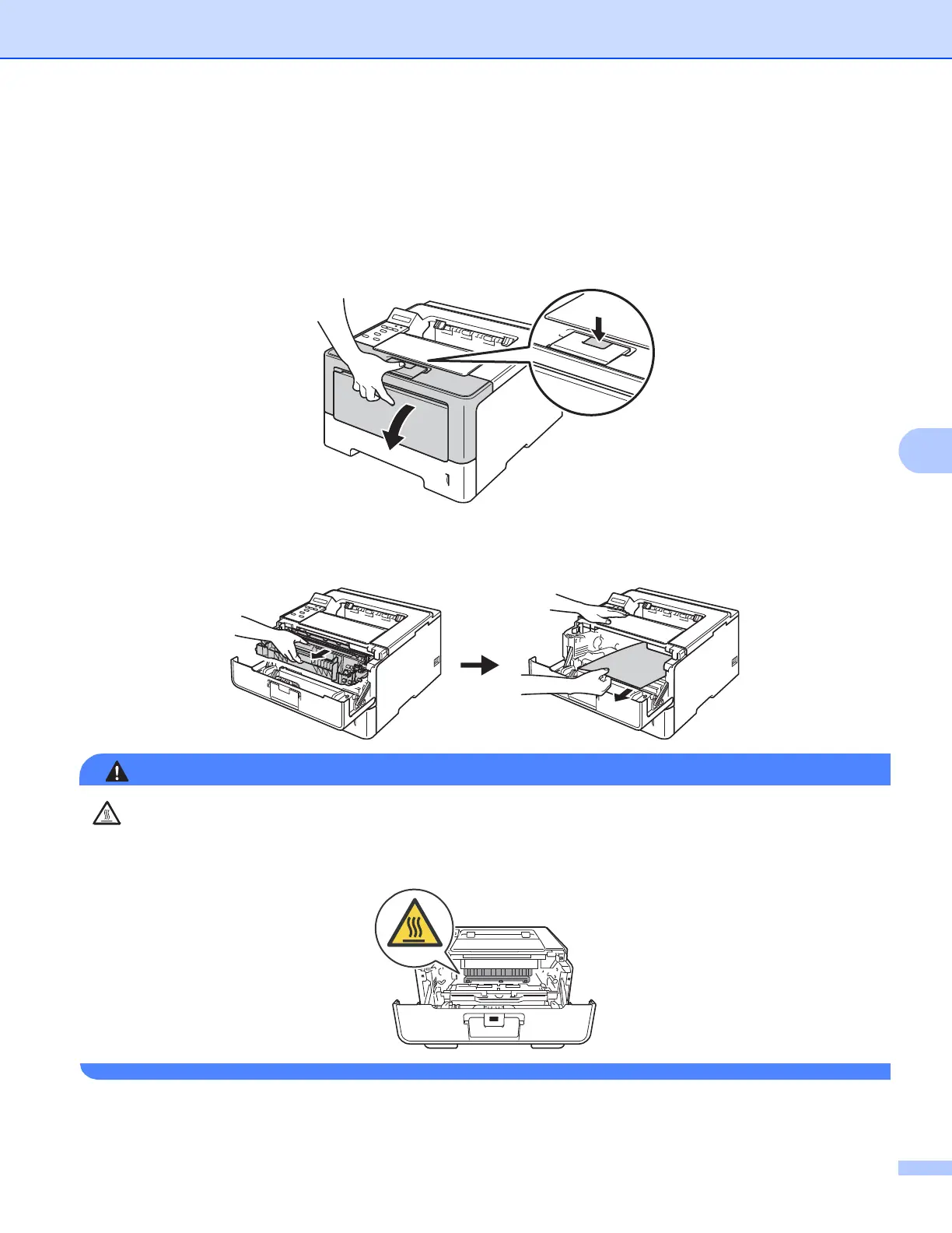 c Slowly take out the drum unit and toner cartridge assembly. The jammed paper may be pulled out with