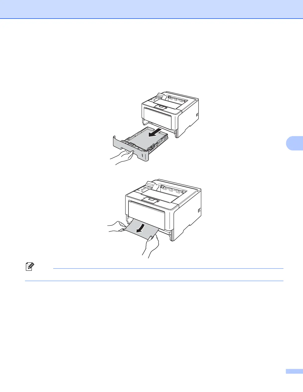 Pulling the jammed paper downward allows you to remove the paper more easily.