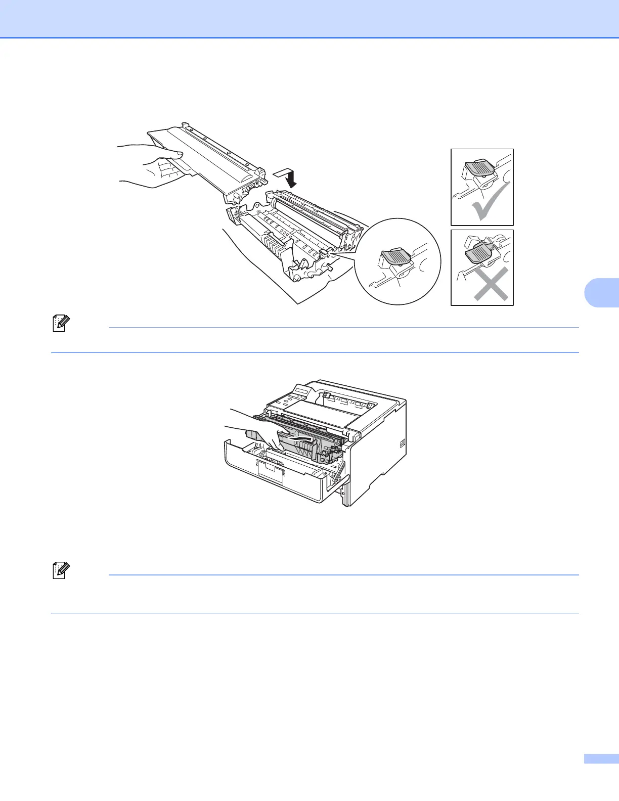g Put the toner cartridge back into the drum unit until you hear it lock into place. If you put the cartridge in