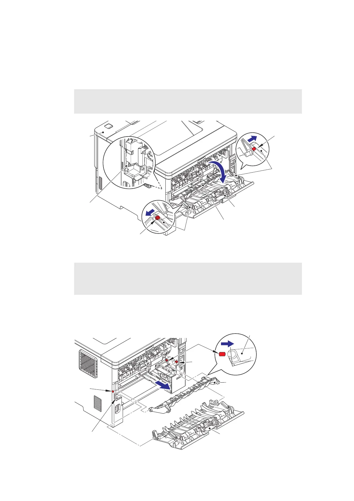 (2) Push both ribs of the back cover in the direction of the arrows, and remove the two