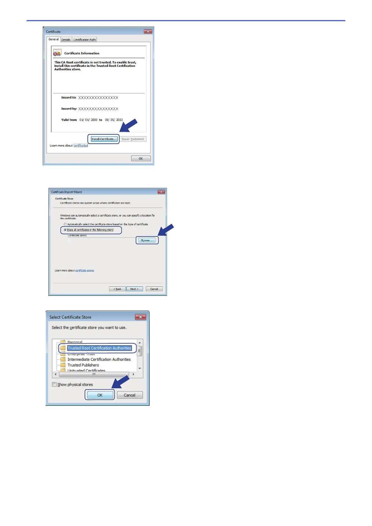 8. Select Place all certificates in the following store, and then click Browse....